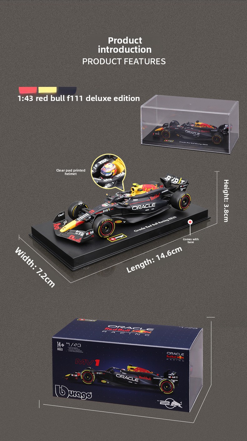 Bring the thrill of Formula 1 into your home with this 1:43 scale Red Bull RB20 F1 racing car model. Crafted from high-quality alloy, this detailed replica captures the authentic team branding, racing livery, and aerodynamic design of the iconic F1 car. Designed as a static display model, its perfect for collectors, motorsport enthusiasts, and desktop decoration. Its precision craftsmanship ensures every curve, logo, and detail reflects the real Formula 1 vehicle.