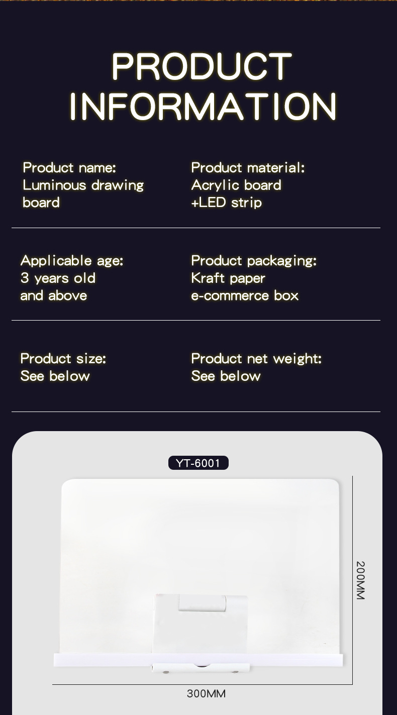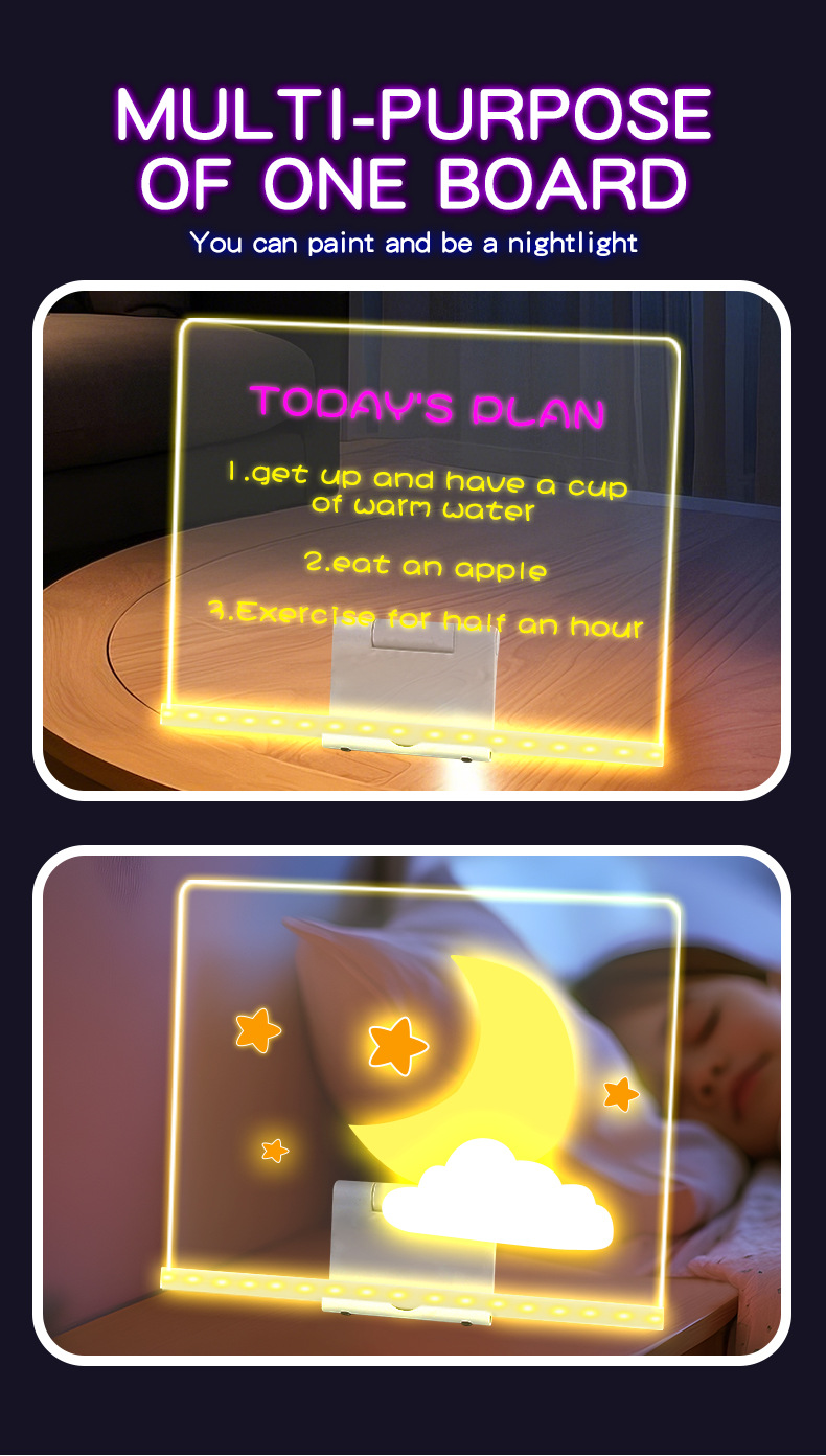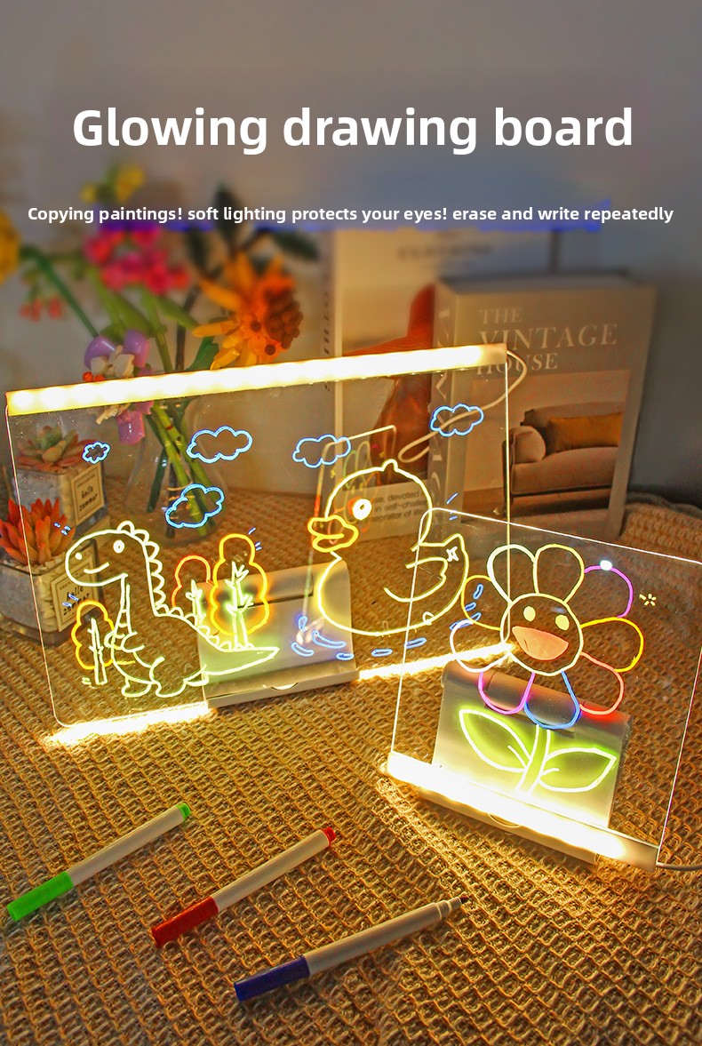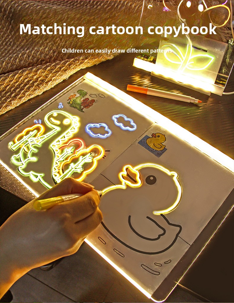 LED Glow Magnetic Drawing Board for Kids - Reusable Fluorescent Light-Up Art Tablet with USB Power