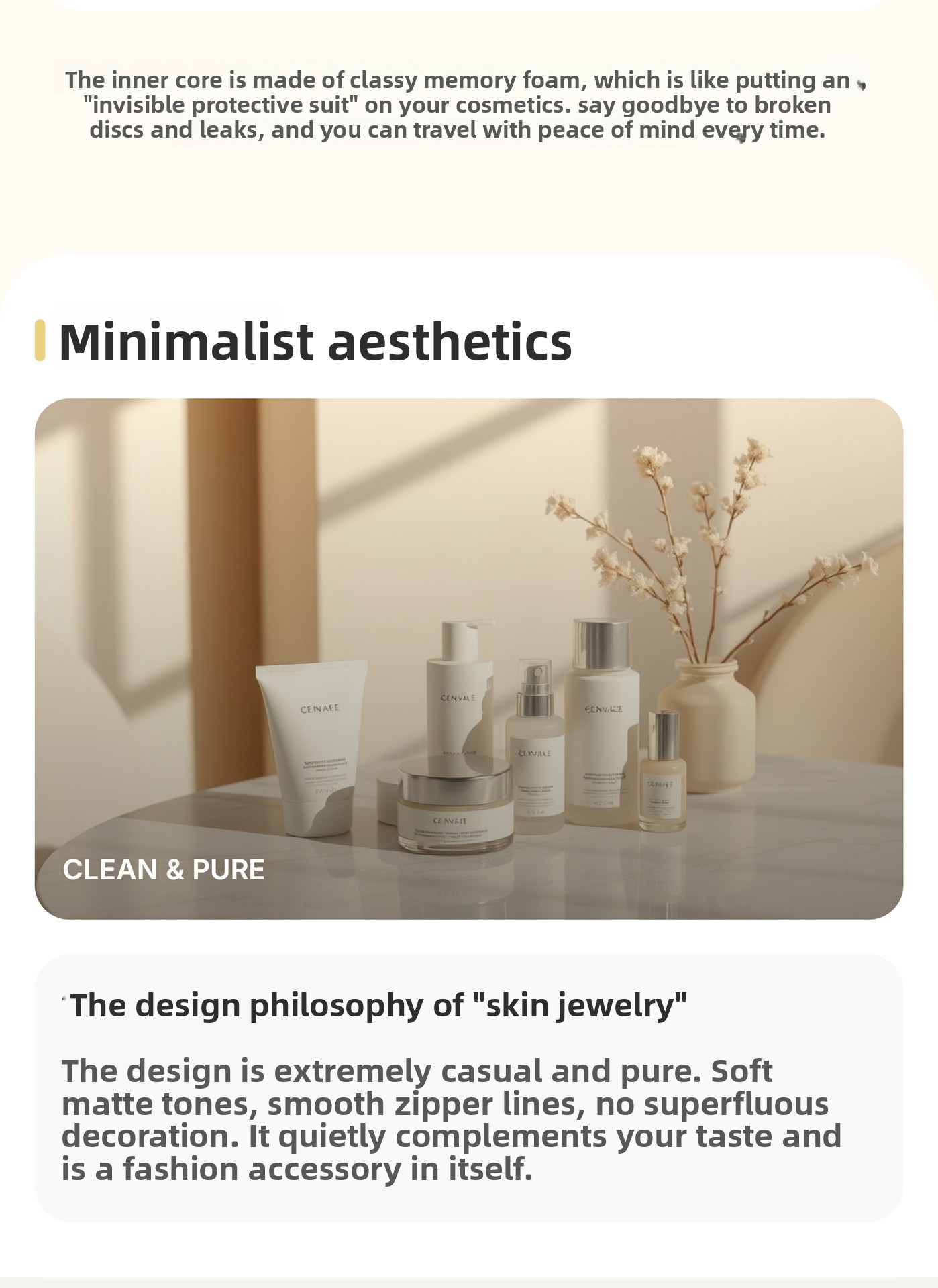 Memory foam interior for ultimate protection of cosmetics