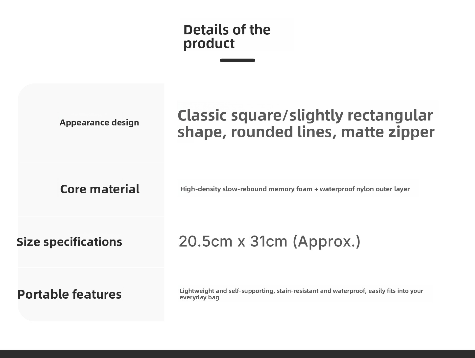 Features: Wear-resistant, portable, compact storage