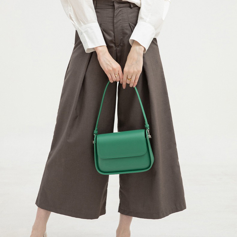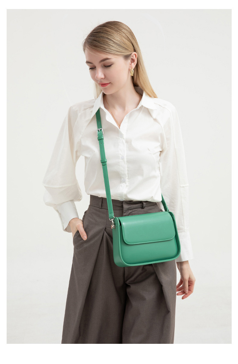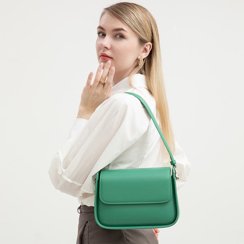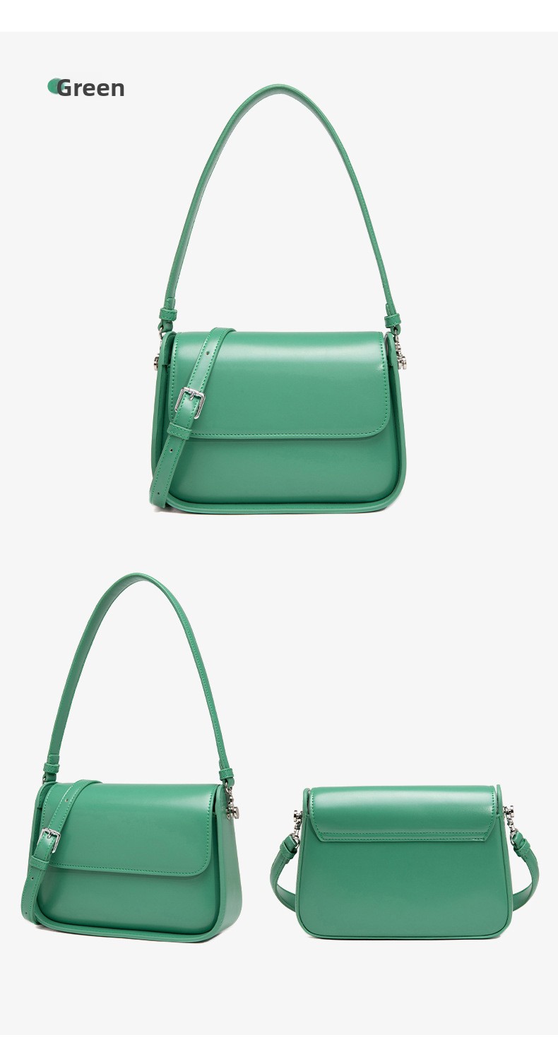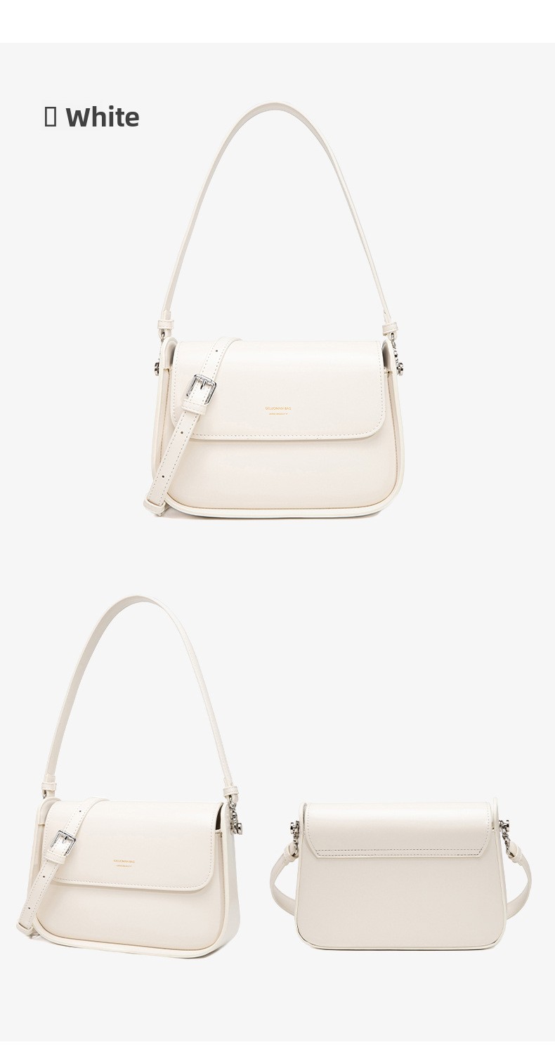 Material: PU (outer), Polyester (lining) | Closure: Lock clasp with cover flap | Strap: Double adjustable shoulder straps | Colors: Brown, White, Black, Fog Blue, Green
