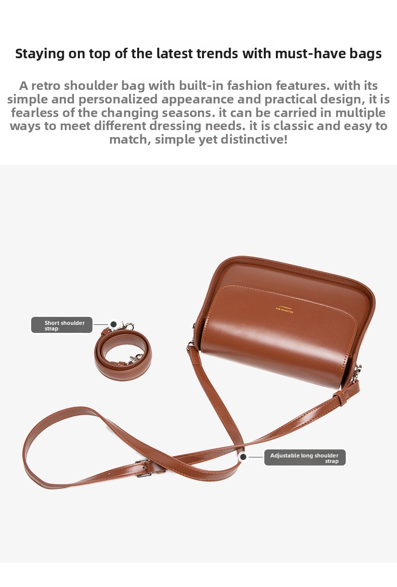 Elevate your everyday style with this retro-inspired saddle bag, featuring a classic silhouette and vintage details for a sophisticated look. Crafted from premium PU leather with a soft polyester lining, this bag combines durability with elegance. Its adjustable crossbody strap and top handle allow versatile carrying options, while interior zippered compartments and open pockets keep your essentials organized. Perfect for daily casual wear, urban outings, or work, this medium-sized horizontal bag complements a minimalist, timeless wardrobe.