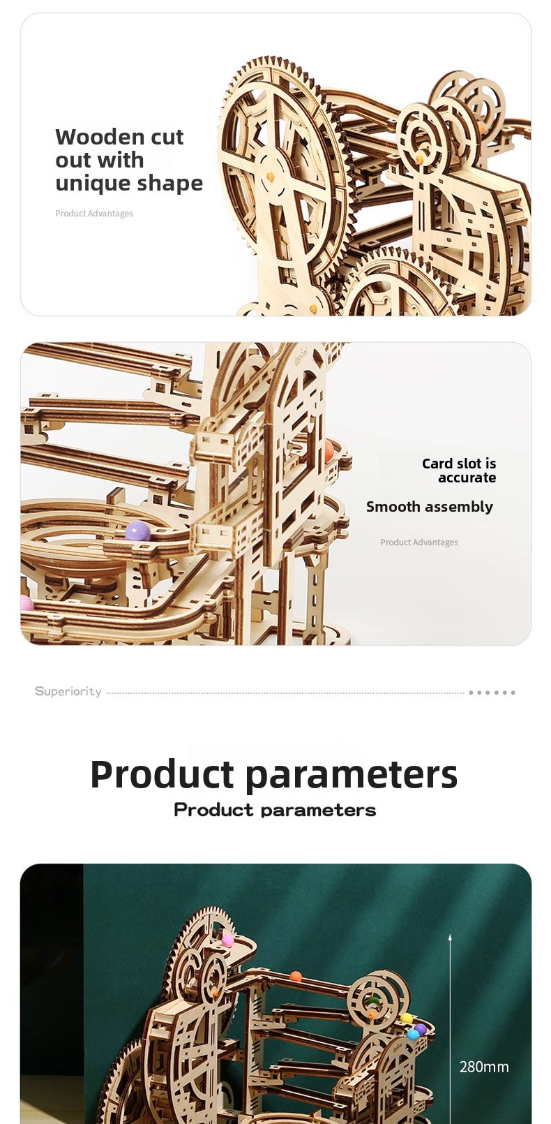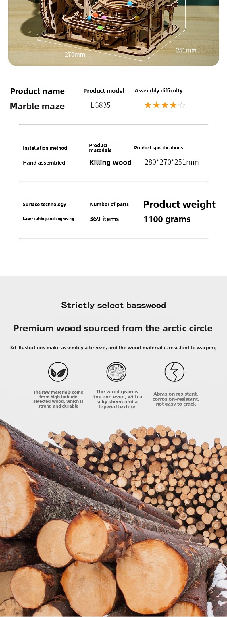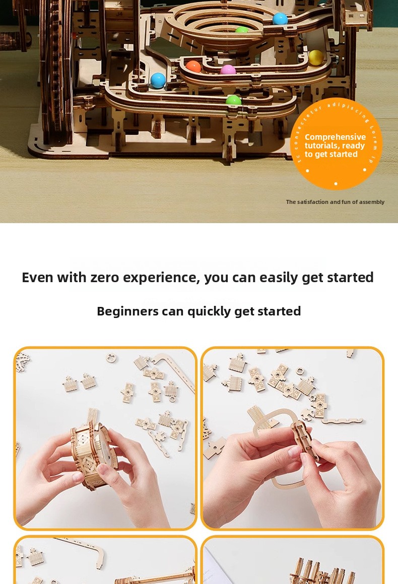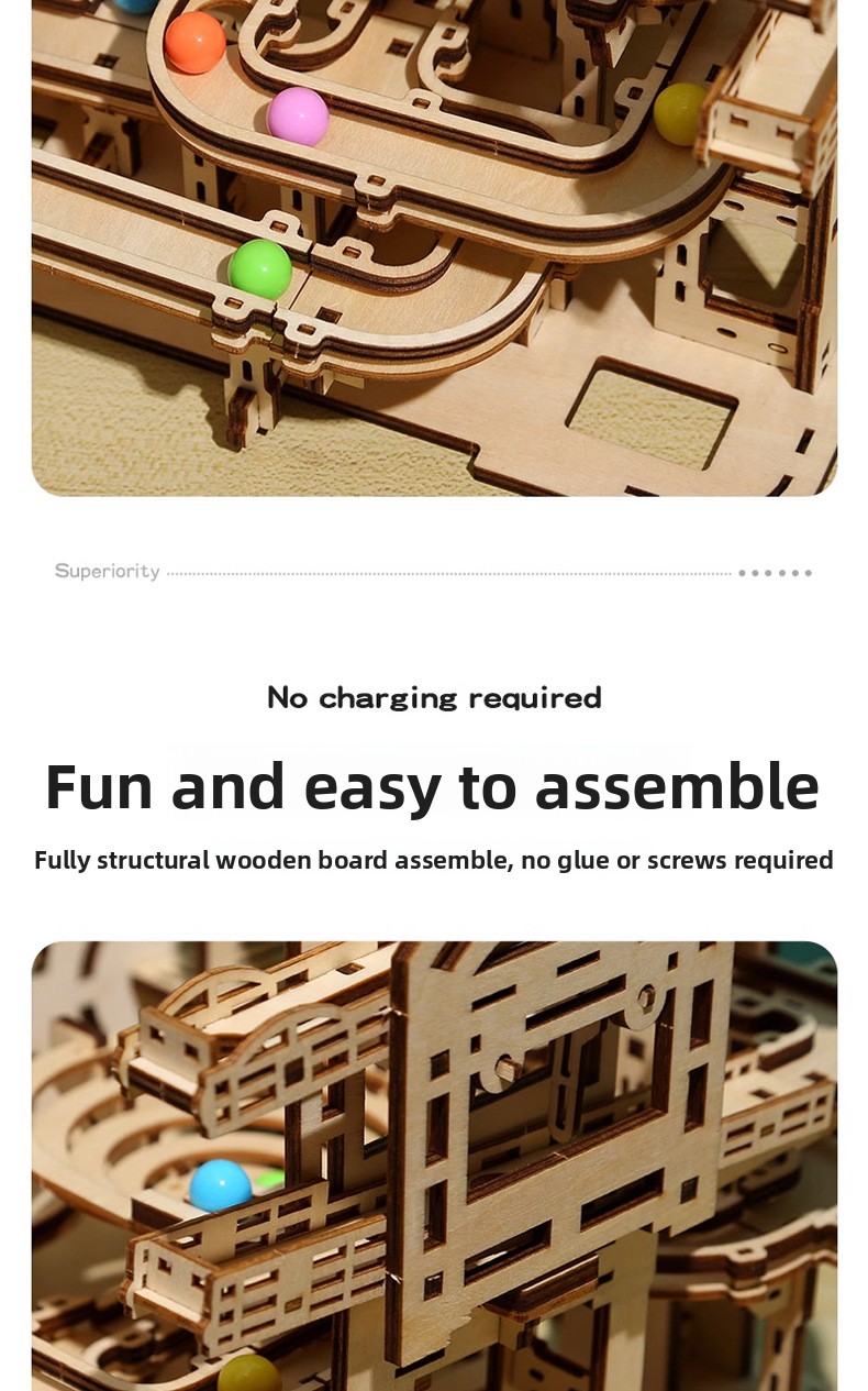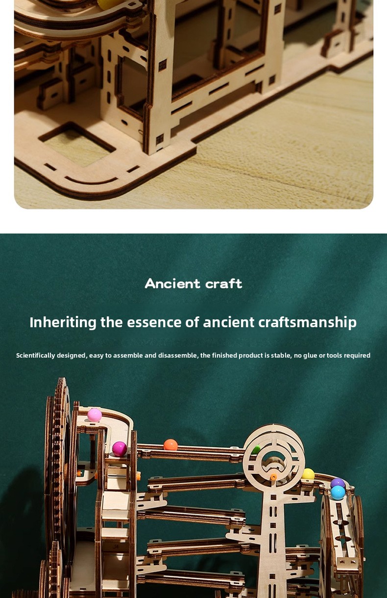 Wooden 3D Marble Run Puzzle Maze DIY Educational Track Building Game for Teens and Adults